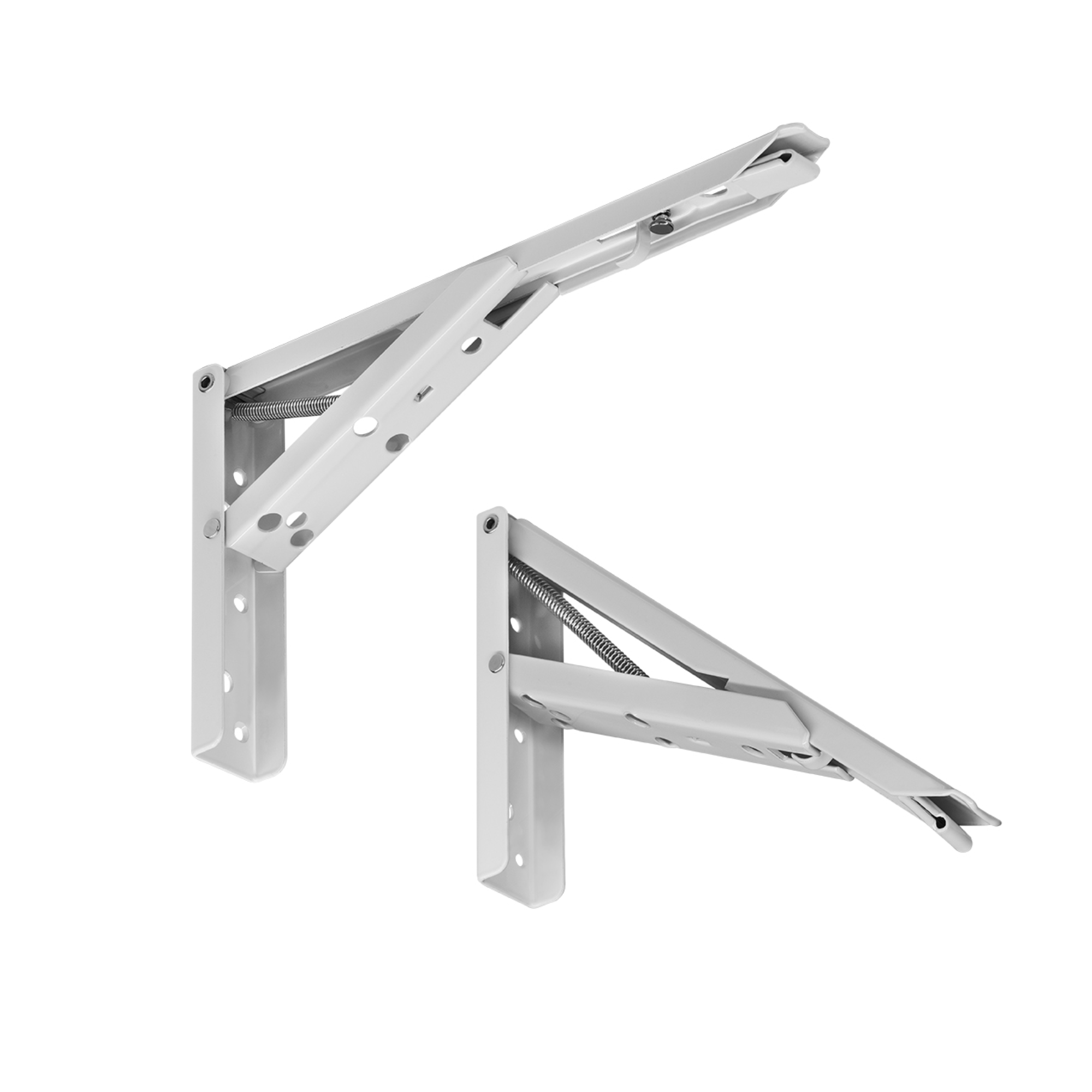 Um recurso retrátil permite que a mão francesa seja dobrada quando não estiver em uso, economizando espaço e mantendo uma estética organizada na parede.